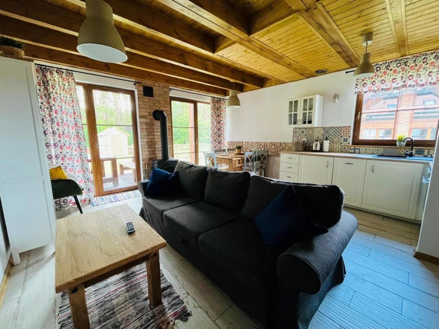 Dom z 2 sypialniami. The fireplace is the standout feature of this holiday home. The holiday home has 2 bedrooms, 2 bathrooms and a kitchenette. Guests can make meals in the kitchenette that features a refrigerator, a dishwasher, an oven and a toaster. Boasting a terrace, this holiday home also features a washing machine, a barbecue and a flat-screen TV. The unit has 3 beds. Dom wakacyjny - 5 osobowy. Powierzchnia pokoju ok.: 67 mkw.